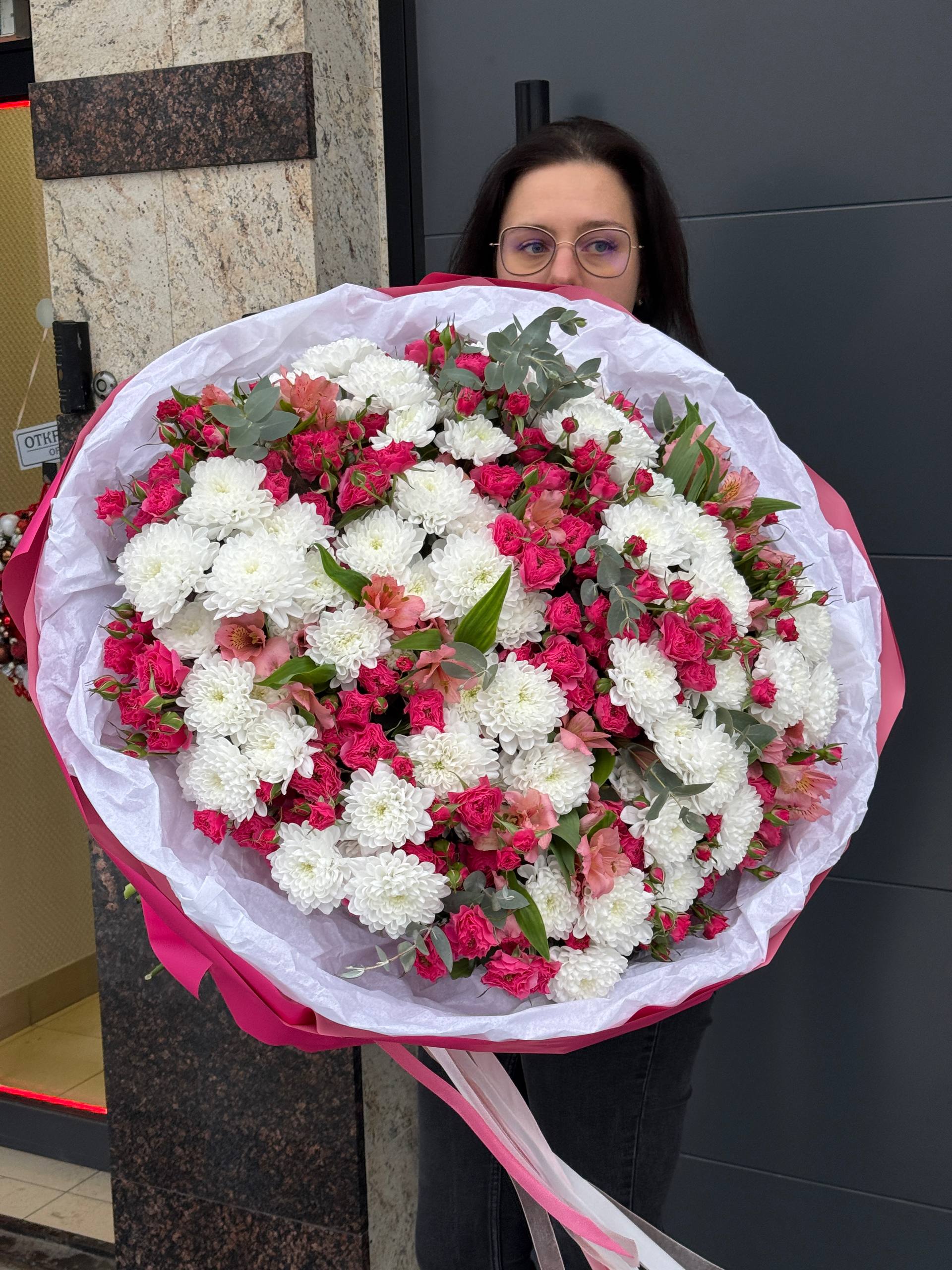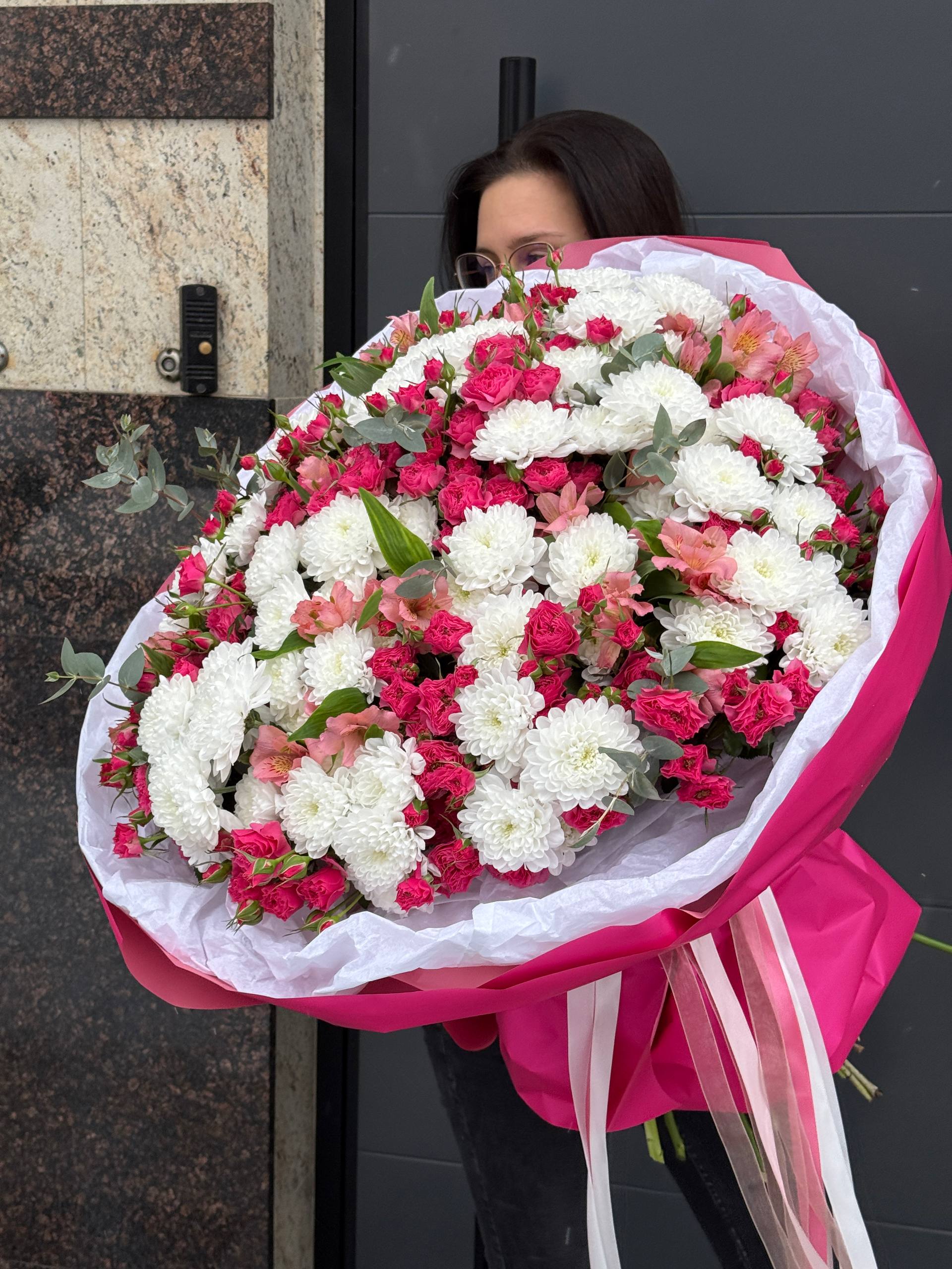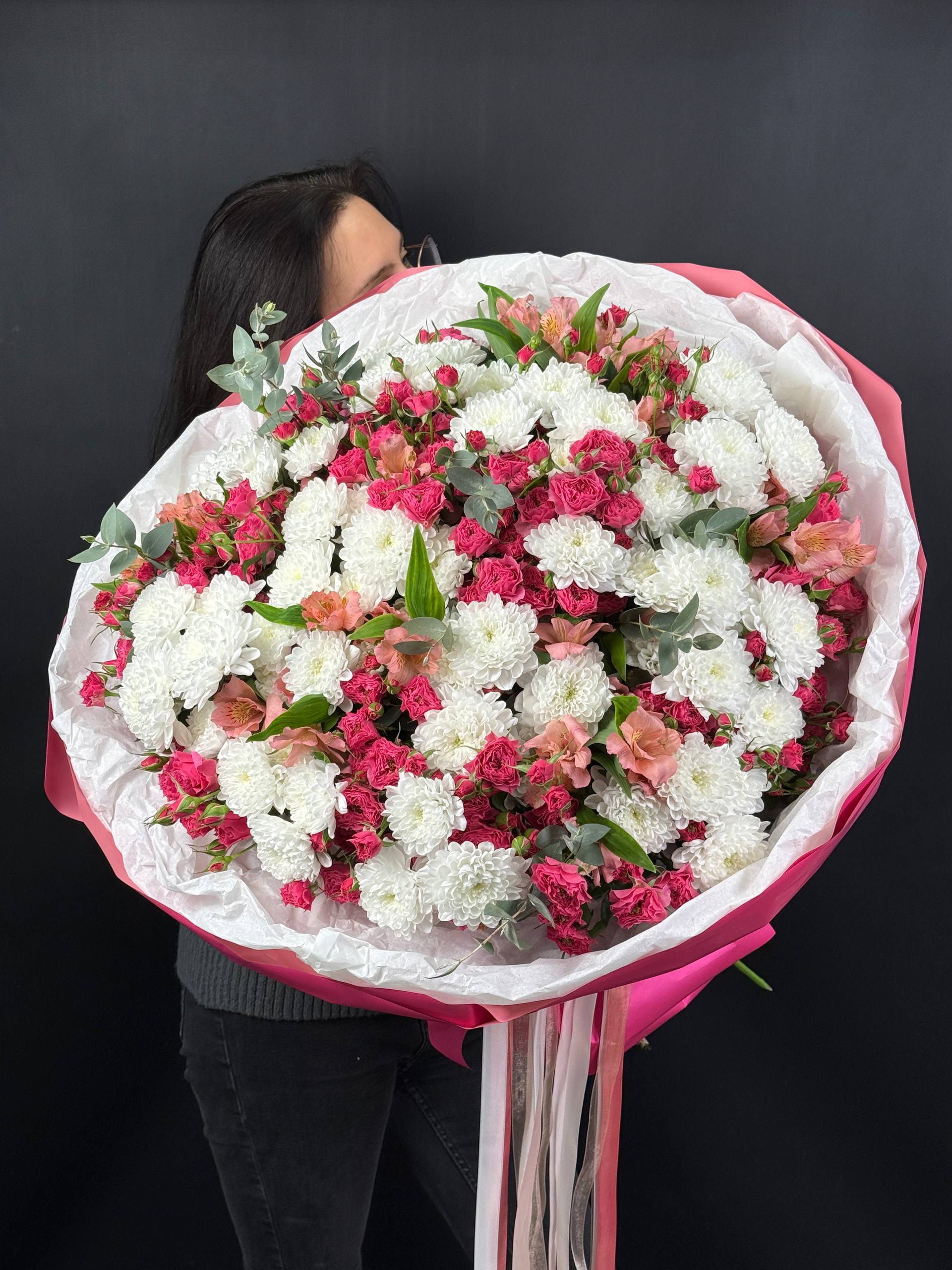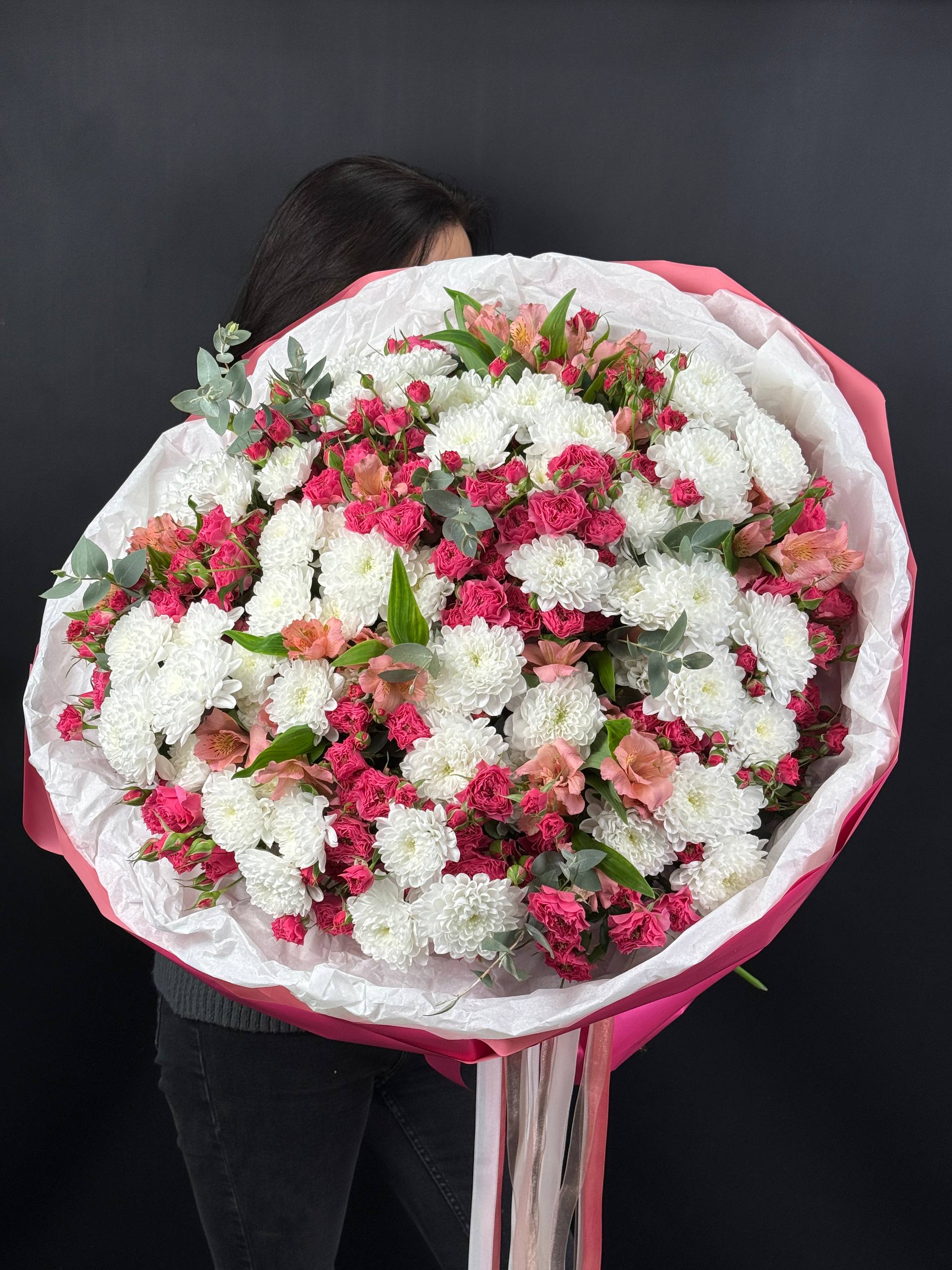 Подарите близким красоту и нежность букета из роскошных роз, элегантных хризантем и ярких альстромерий! Элегантное сочетание цветов подчеркнёт индивидуальность получателя, создавая атмосферу праздника и радости. Длительный срок свежести композиций позволит наслаждаться великолепием дольше. Услуга быстрой доставки по городу сделает ваш жест ещё более тёплым и запоминающимся. Порадуйте близких красотой природы уже сегодня!